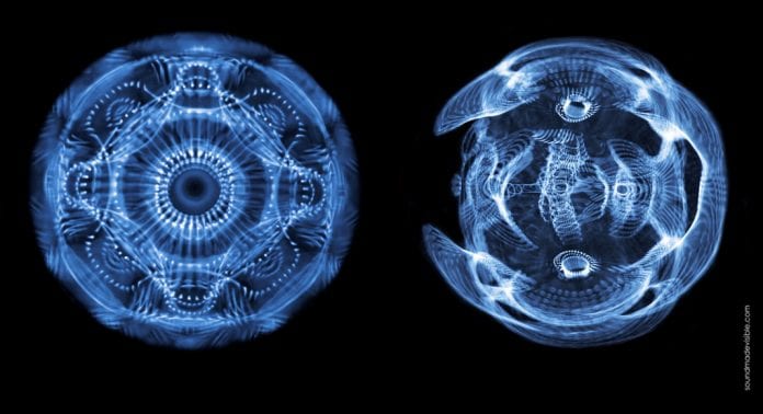The term “cymatics” refers to the science of visible sound, based on the principle that when sound encounters a membrane, such as the surface of water, it renders the sound visible.