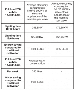 - Lower water consumption, 50% less than in traditional cultivation;
