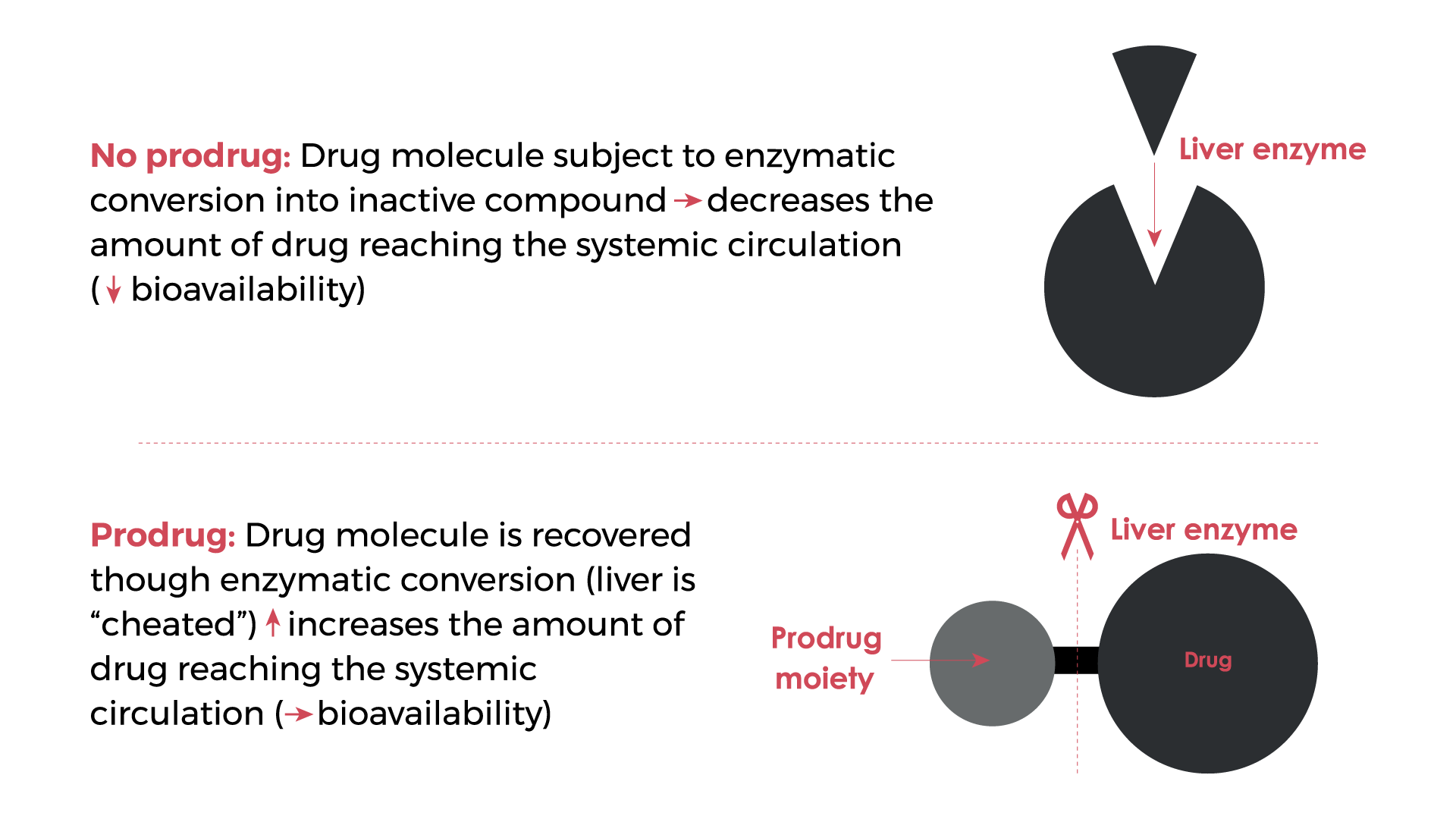 Prodrugs are derivatives of therapeutic agents created to improve the pharmacokinetics profile of a drug. Within a prodrug, the pharmacological activity of the drug is masked and is recovered within the human body upon bioconversion of the prodrug in the liver, a process that is typically mediated by enzymes.2