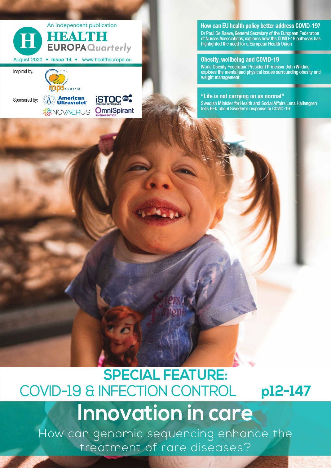 We take a look at technology and innovation in the health and care sectors, covering blockchain, telehealth, and occupational therapies, before moving on to the treatment and care of non-COVID-19 diseases and conditions; as Dr Lucy Allen, Director of Research at the Cystic Fibrosis Trust, explores research, challenges and collaboration in the treatment of cystic fibrosis. Joanne Hackett, formerly of Genomics England, tells us about the implications of genomic medicine and personalised care for the treatment of rare diseases. This is followed by an embedded e-book by Austrian MPS Society co-founder Susanne Kircher, talking about mucopolysaccharide storage disorders, a group of rare chronic diseases which typically manifest in early childhood.
