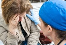doctor helping woman having a stroke